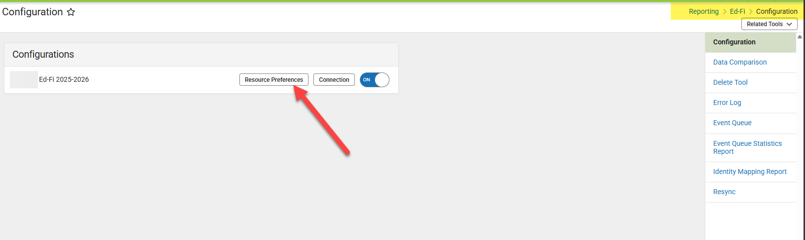 - Your SIS coordinator will need to navigate to Ed Fi Configure Screen and select Resource Preferences.